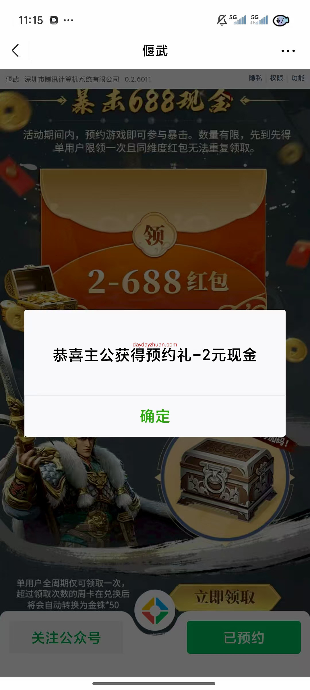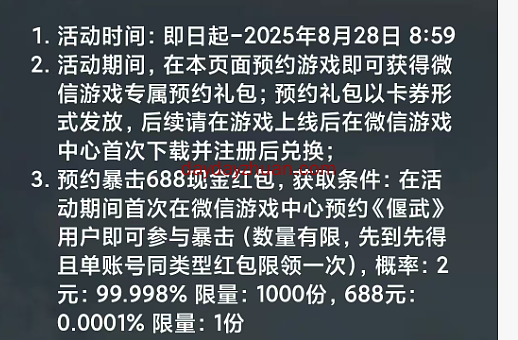 腾讯游戏偃武游戏预约活动,预约后直接抽2~688元微信红包,必中,但是红包数量有限现在还有,没抽到的就是没了,游戏上线后(8.28号当天)下载游戏注册后可以兑换红包,,天天线报网的赚友赶紧上吧。