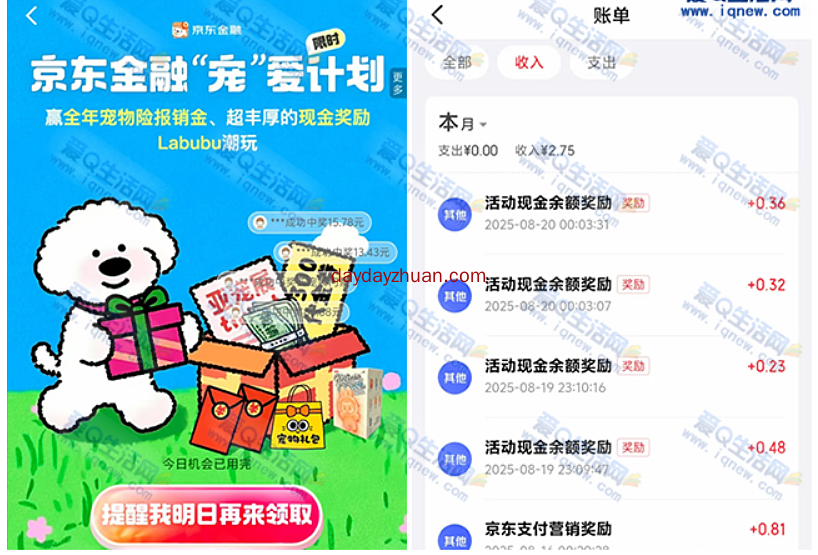 京东金融亚宠展抽现金红包羊毛活动,每天可参与两次,随便传图片可抽奖,抽随机现金红包,非必中,亲测中0.36+0.32元,天天线报网的赚友赶紧上吧。